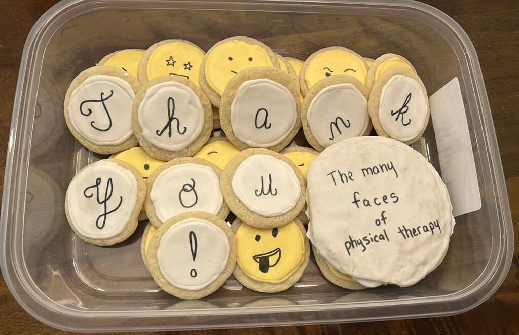 We were pleasantly surprised by a thoughtful gift from one of our amazing physical therapy patients – these cookies definitely made us all smile! We are incredibly grateful for this sweet gesture and want to say a big thank you to our patient for brightening our day.
