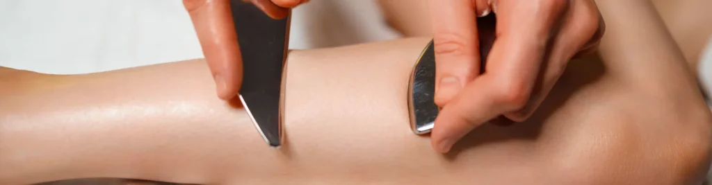 Our physical therapists use special plastic or metal tools to gently move and scrape against the skin to relieve pain, decrease inflammation, and promote the healing process.